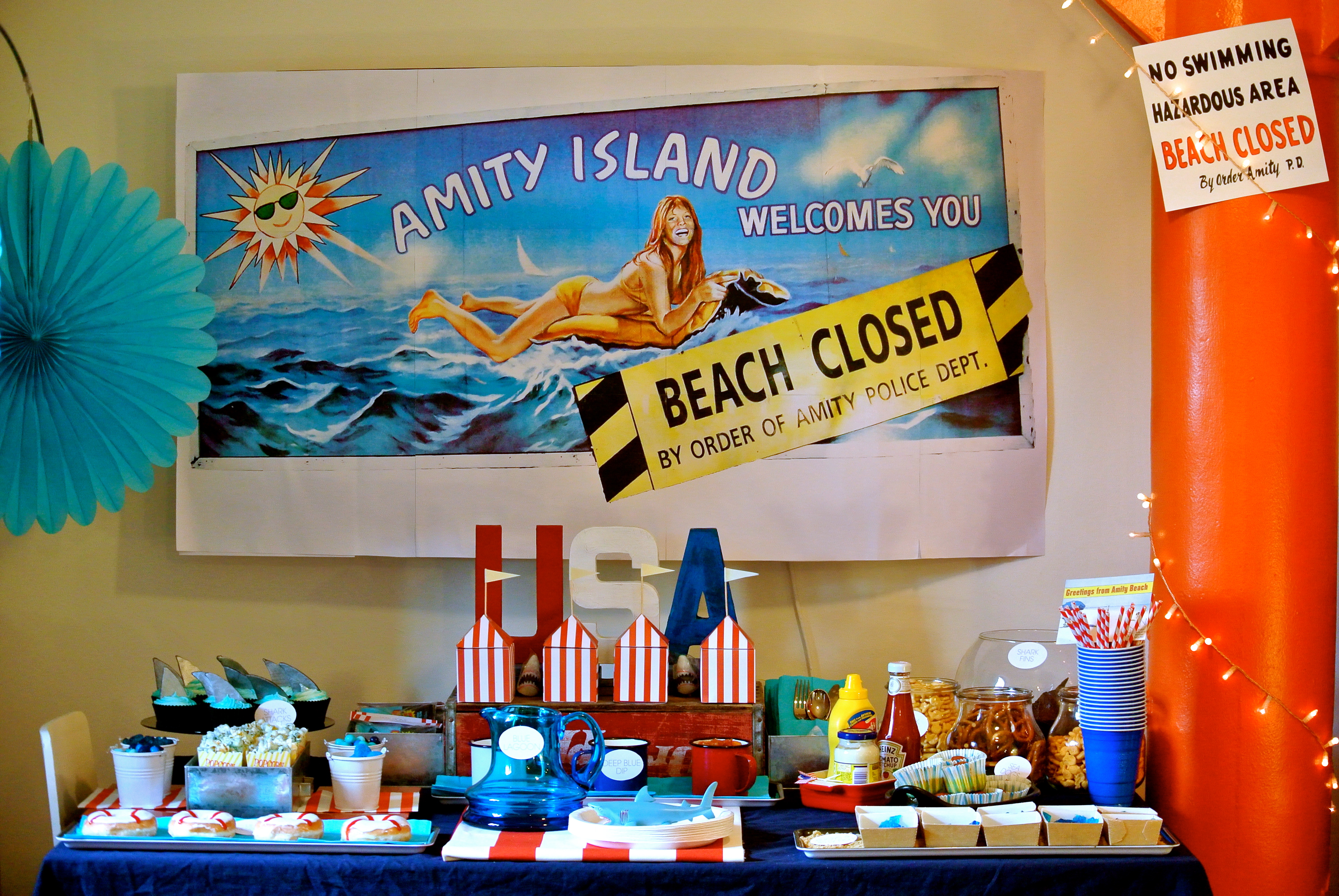 I was fortunate enough to discover a wonderful seller on Etsy, “HelloMySweet”, from whom I ordered a set of Jaws-themed printables, and these fantastic prints brought the whole theme together wonderfully: