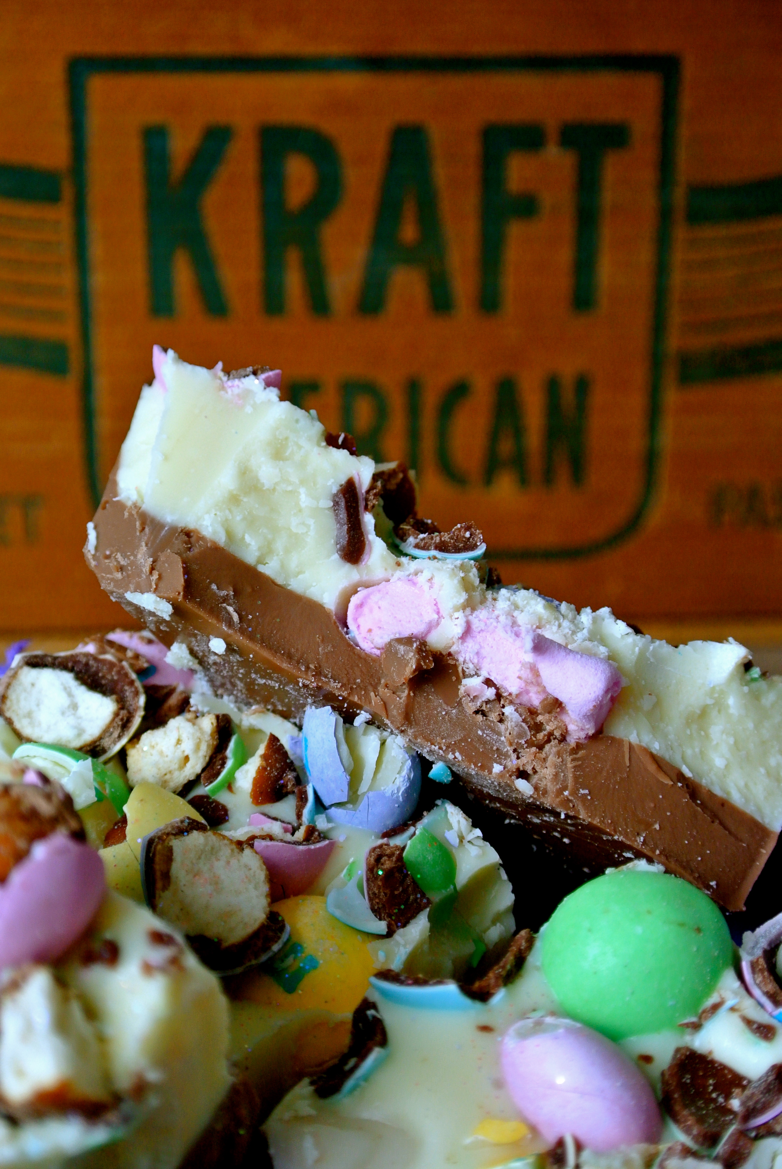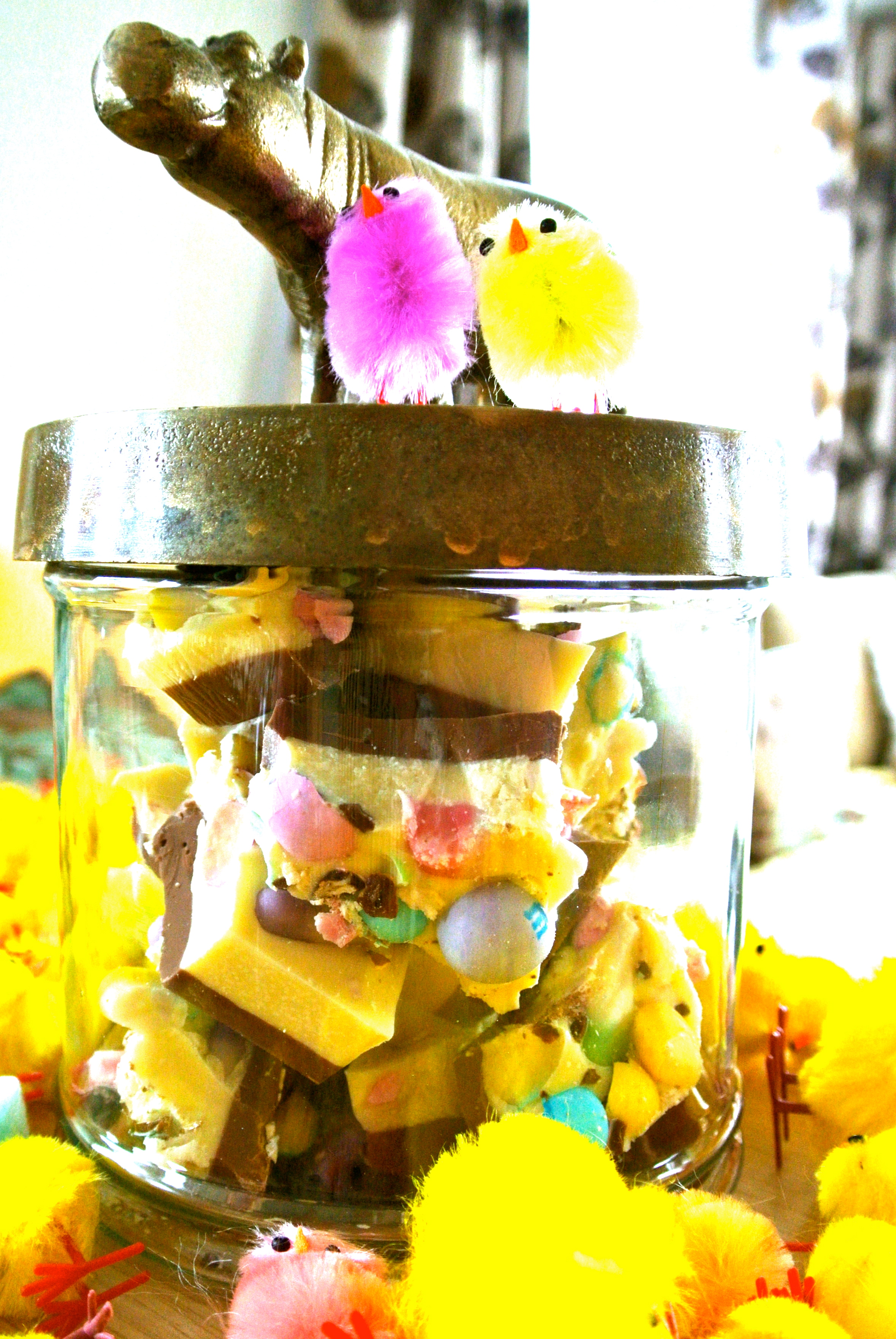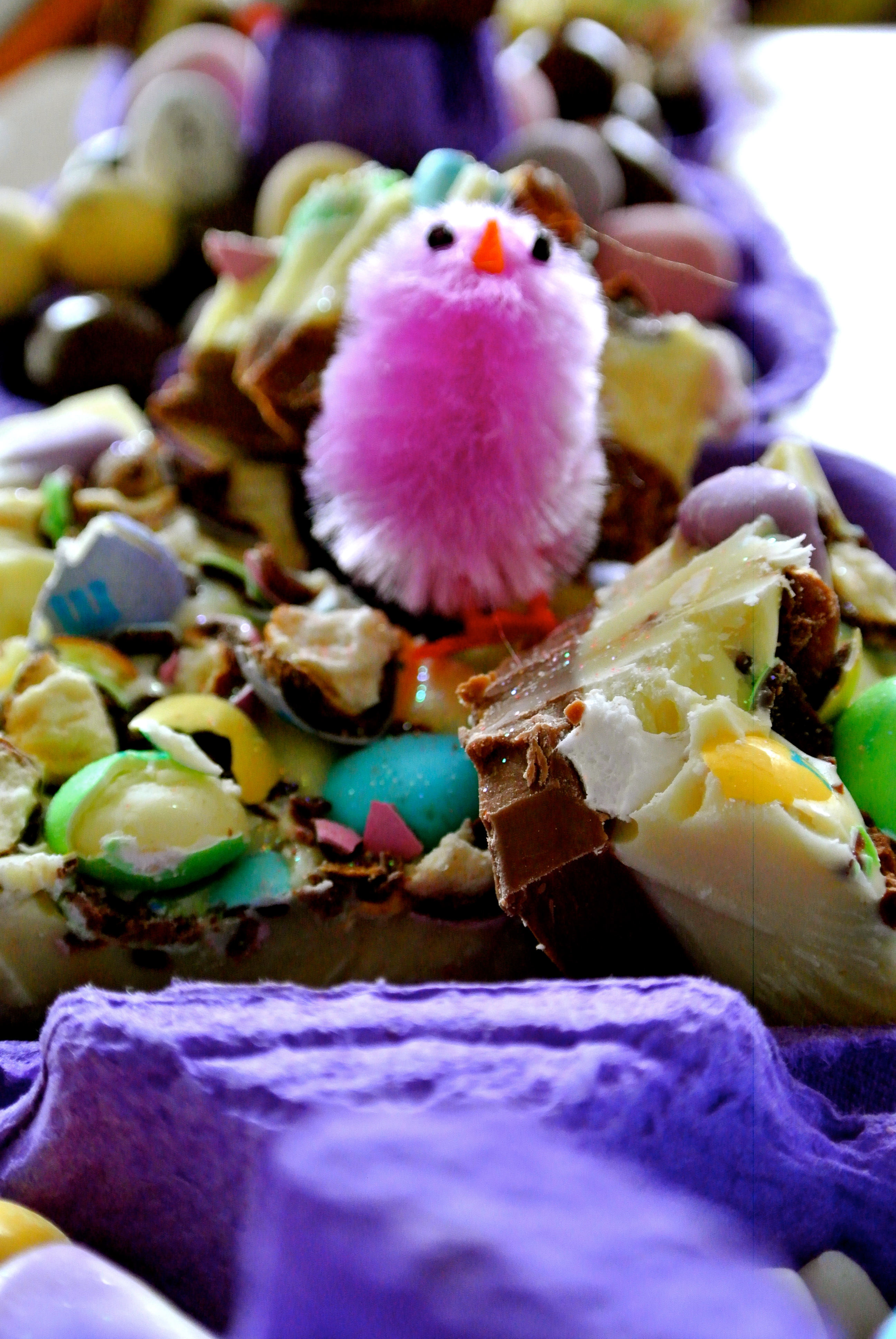 We also enjoyed Easter Bark, made from white and milk chocolate and bejewelled with smashed pretzel and white chocolate m&ms, candy corns and marshmallows. Yummy!