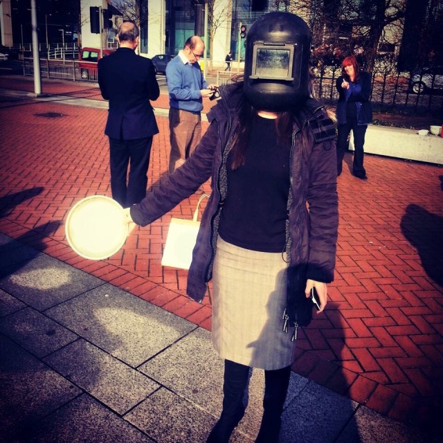 Productivity levels in the office dipped significantly as we deserted the building in favour of the nearby urban space a little after 9:00am, armed with a welding mask and pie tin to safely observe the heavens.