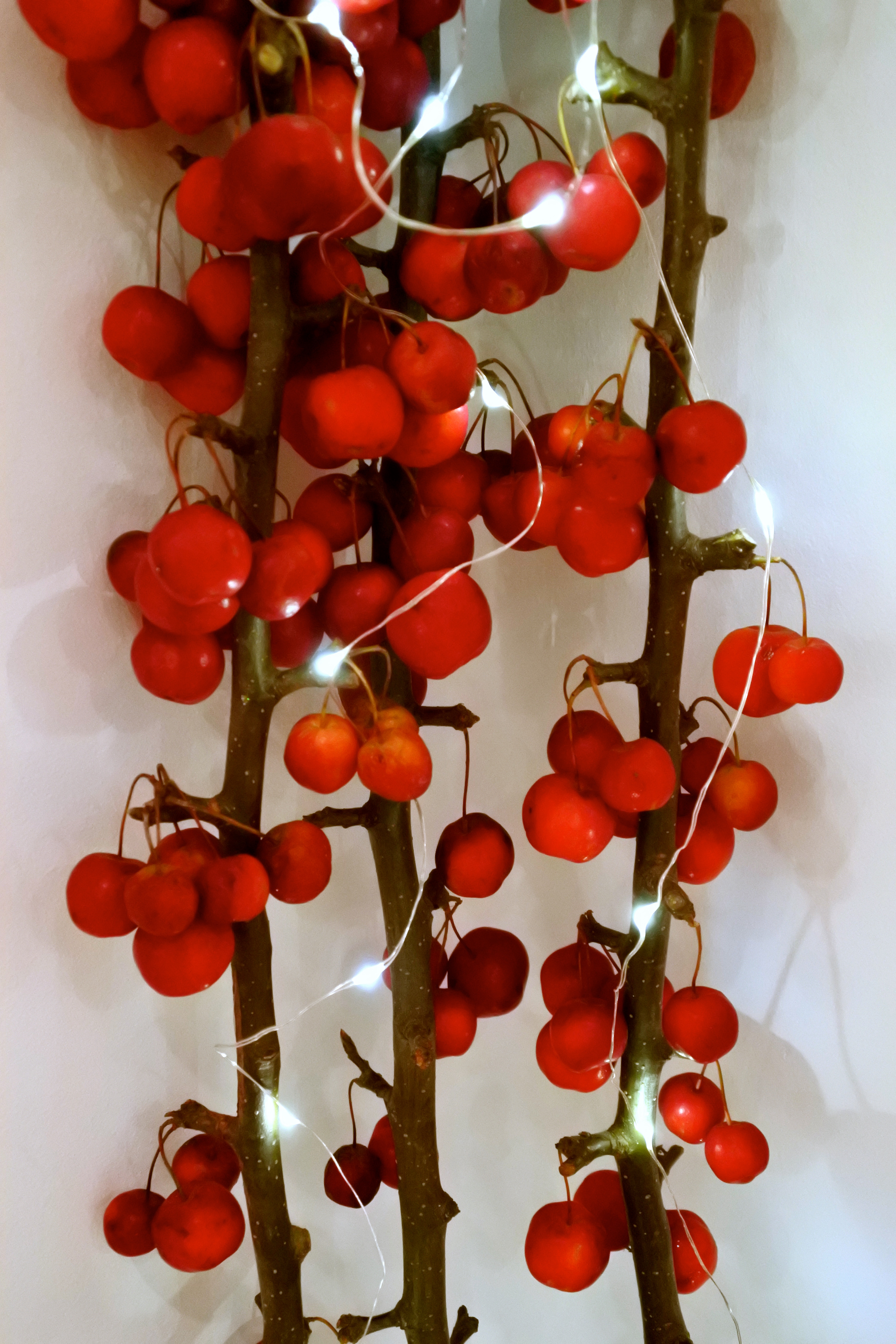 And it wouldn’t be Christmas without an abundance of lights and candles. A local potter’s stars and moon votive fitted in perfectly, as did the weeping ice candles from Lakeland. We also picked up some fabulous crab apples from Forbesfield Flowers, Castle Arcade, Cardiff.