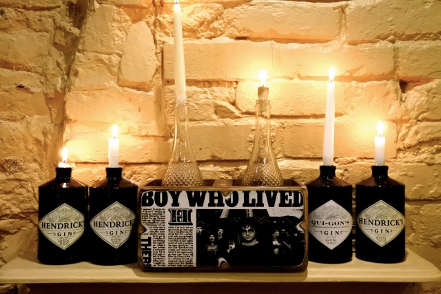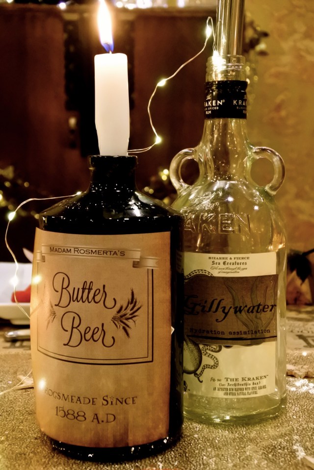 Bottle labels were printed from Over the Big Moon online, and attached to old prosecco and gin bottles. The crackers (M&S) were sadly not quite wizard worthy with no rear-admiral hats or love white mice, but I thought the unusual design would be perfect!