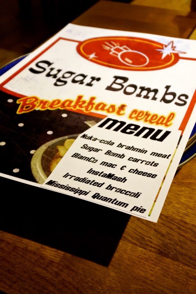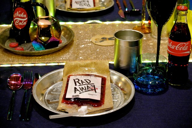 Fallout 76 doesn’t disappoint when it comes to the usual wasteland “consumables” and ability to craft and cook using those scavenged finds. Some of the well known items include InstaMash, Sugar Bombs and the refreshing Nuka Cola. Guests were provided with an emergency supply of Rad Away, a wasteland essential (pomegranate juice).