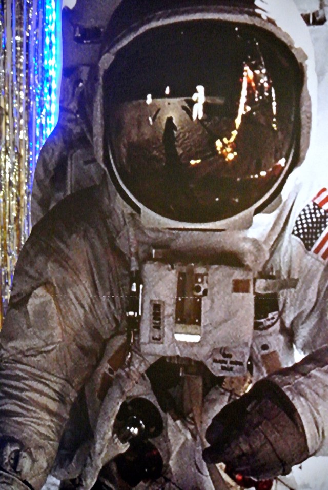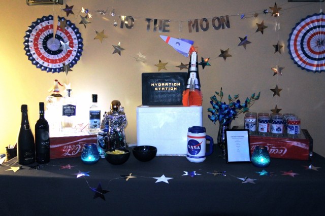 We covered our dining room with a foil backdrop, representing the innovative new foils developed by NASA to withstand the extremes of space. Finally, it wouldn’t be an Apollo party without a life-size cut-out of the legend, Buzz Aldrin, and so we set one of these up next to the buffet table.