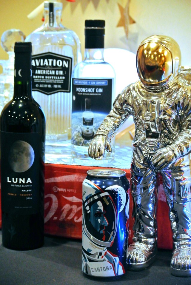 As those of you who have read my blog before will know, a party is not a party unless it involves a box of dry-ice (available from ChilliStick). We set up a well-stocked and spaced themed “hydration station”, featuring Moon Shot gin (where its botanicals have actually travelled into space), Aviation Gin, Special Edition Kronenbourg 1664 and a selection of space worthy wines.