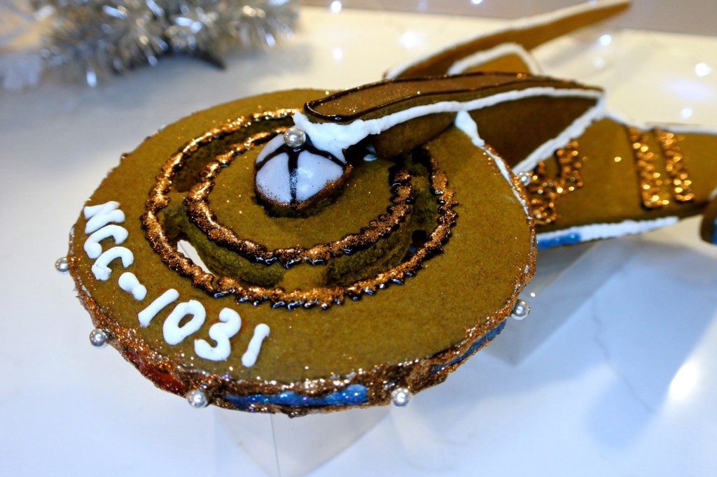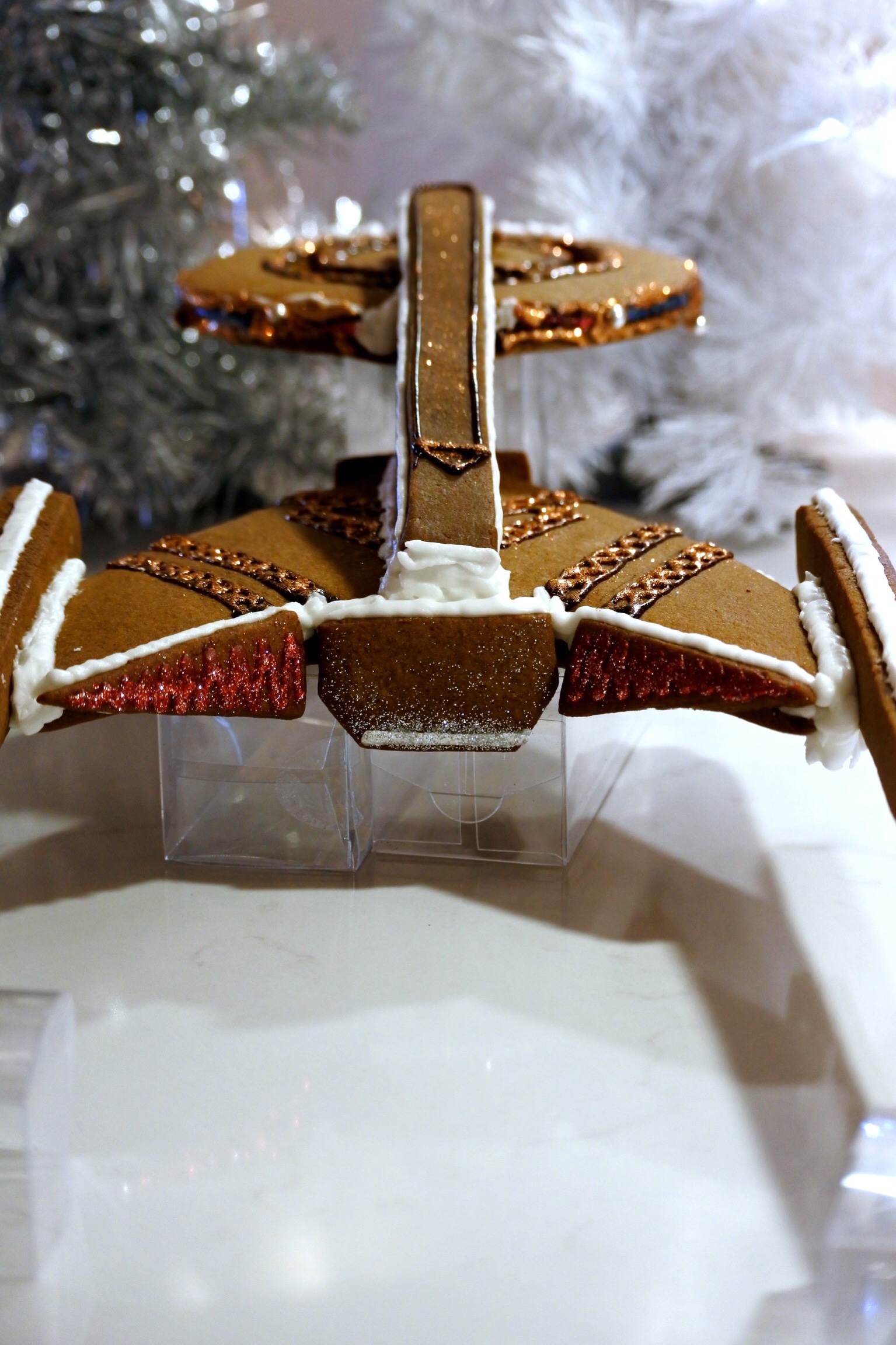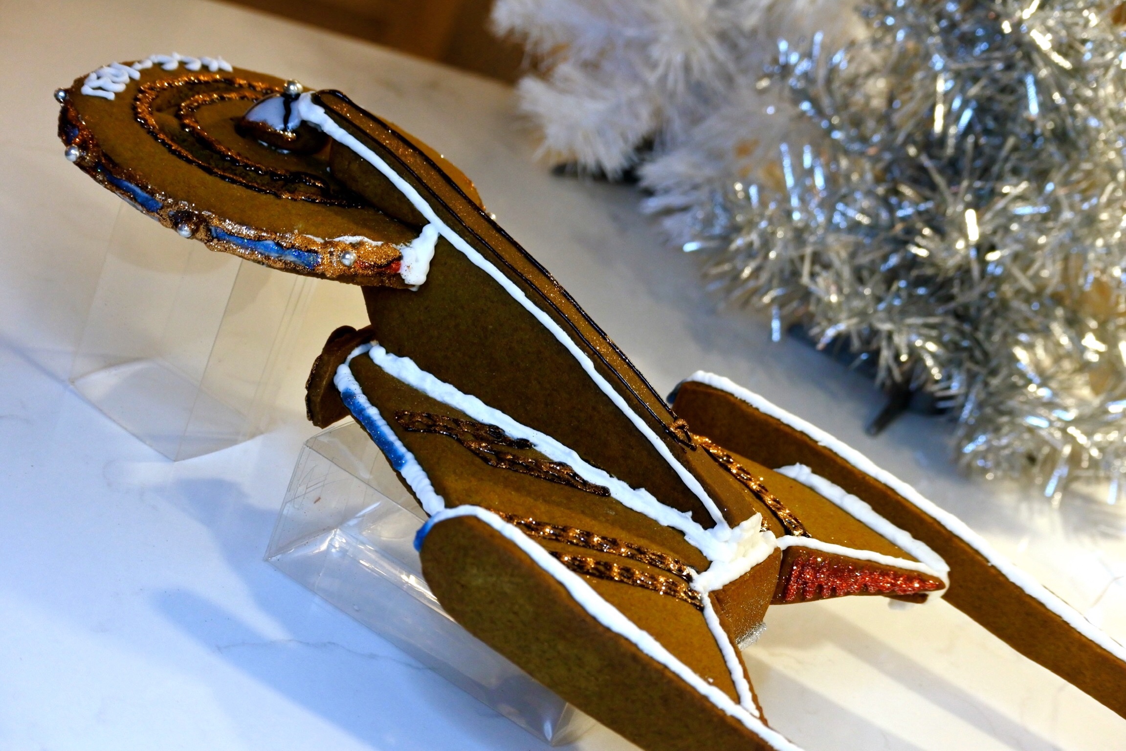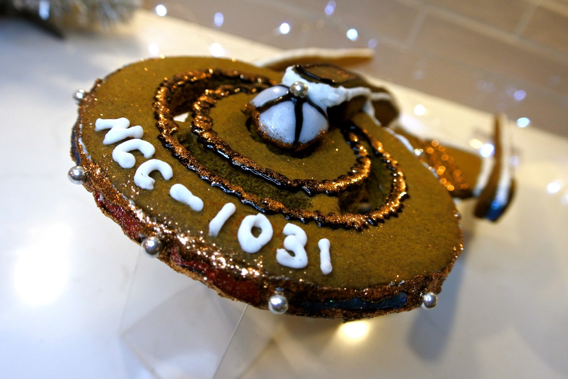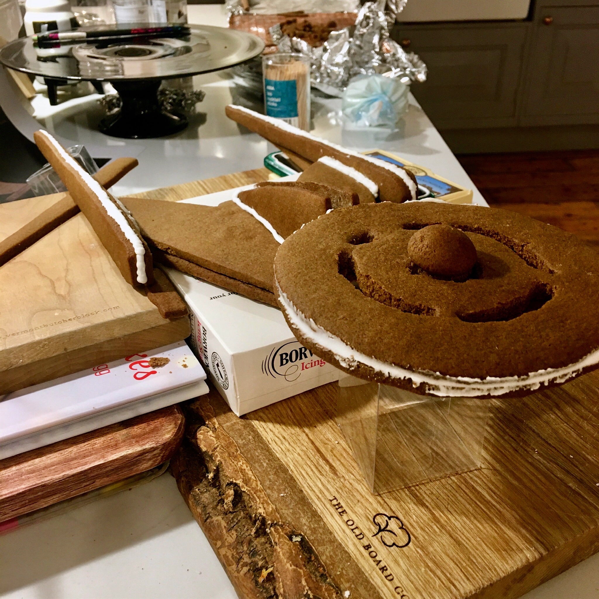 Season 3 of Discovery started airing on 16th October, and this was my inspiration for the 2020 gingerbread spectacular! The USS Discovery! I decided to go with the original NCC-1301 design, rather than the 32nd century retro-fitted A version, although this was going to be my “Plan B” if the icing decided not to hold the nacelles. I have always loved the design of the Discovery, and love the spore drive flip!