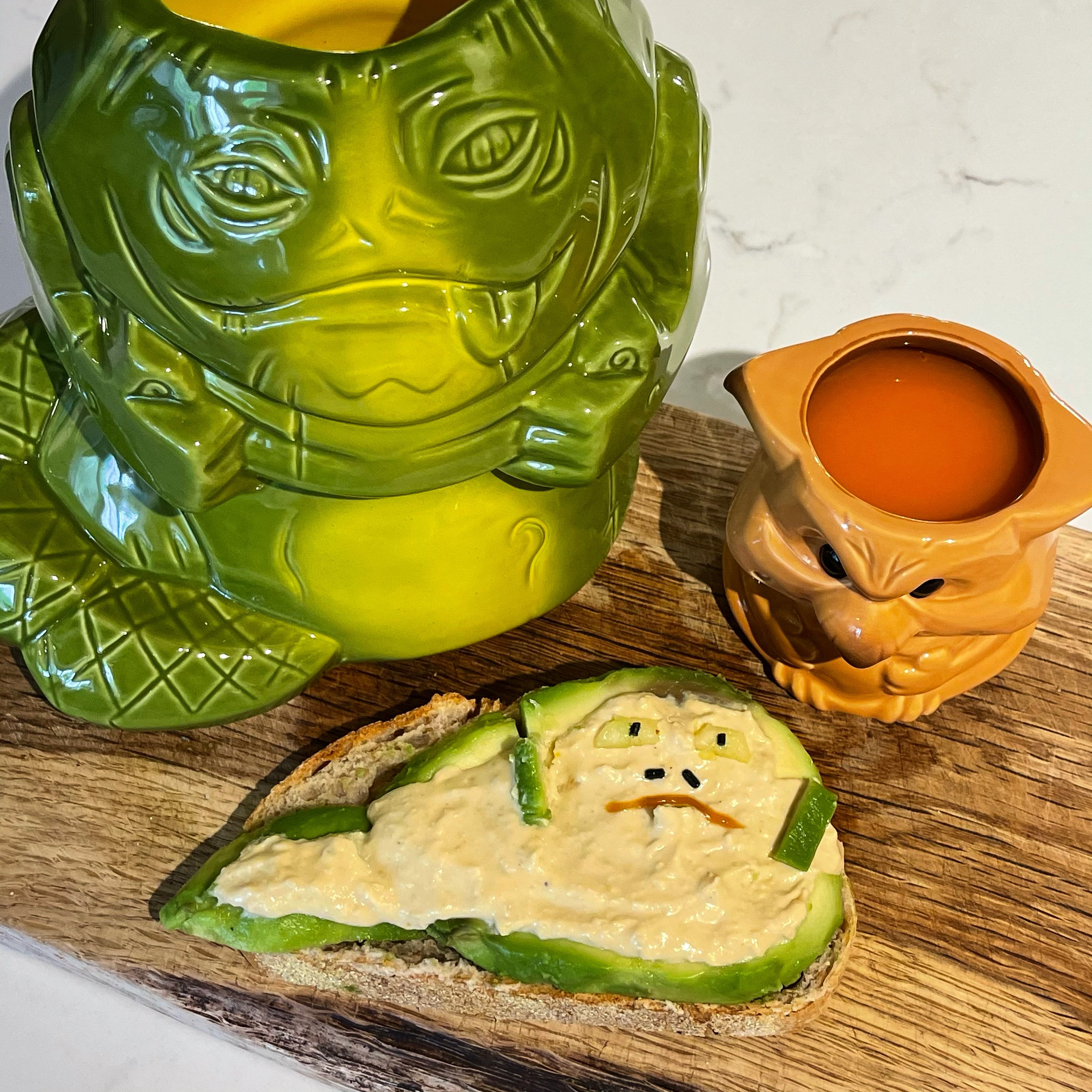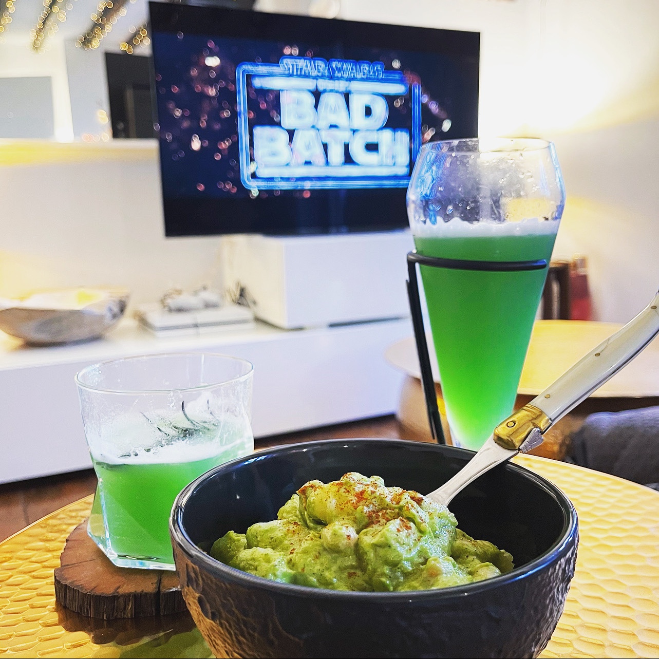 Dianoga Pasta / Ahsoka Tano chip ‘n dip / Blue milk macarons / Chewbacca Hot Dogs / Jabbacado on Toast