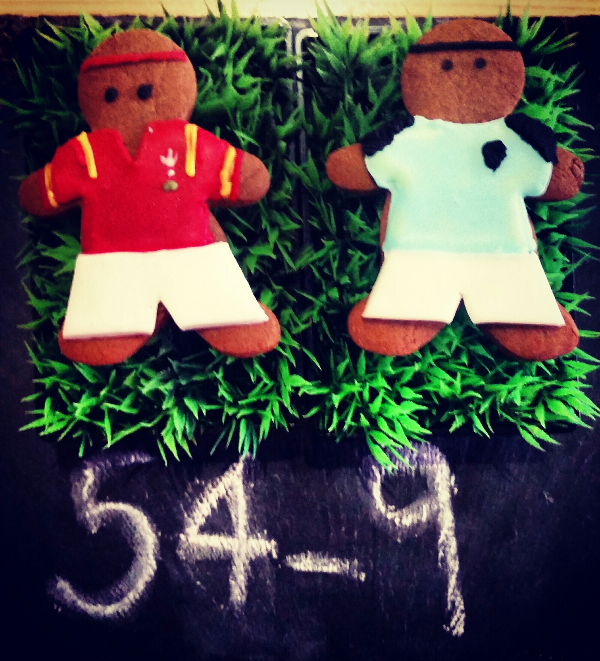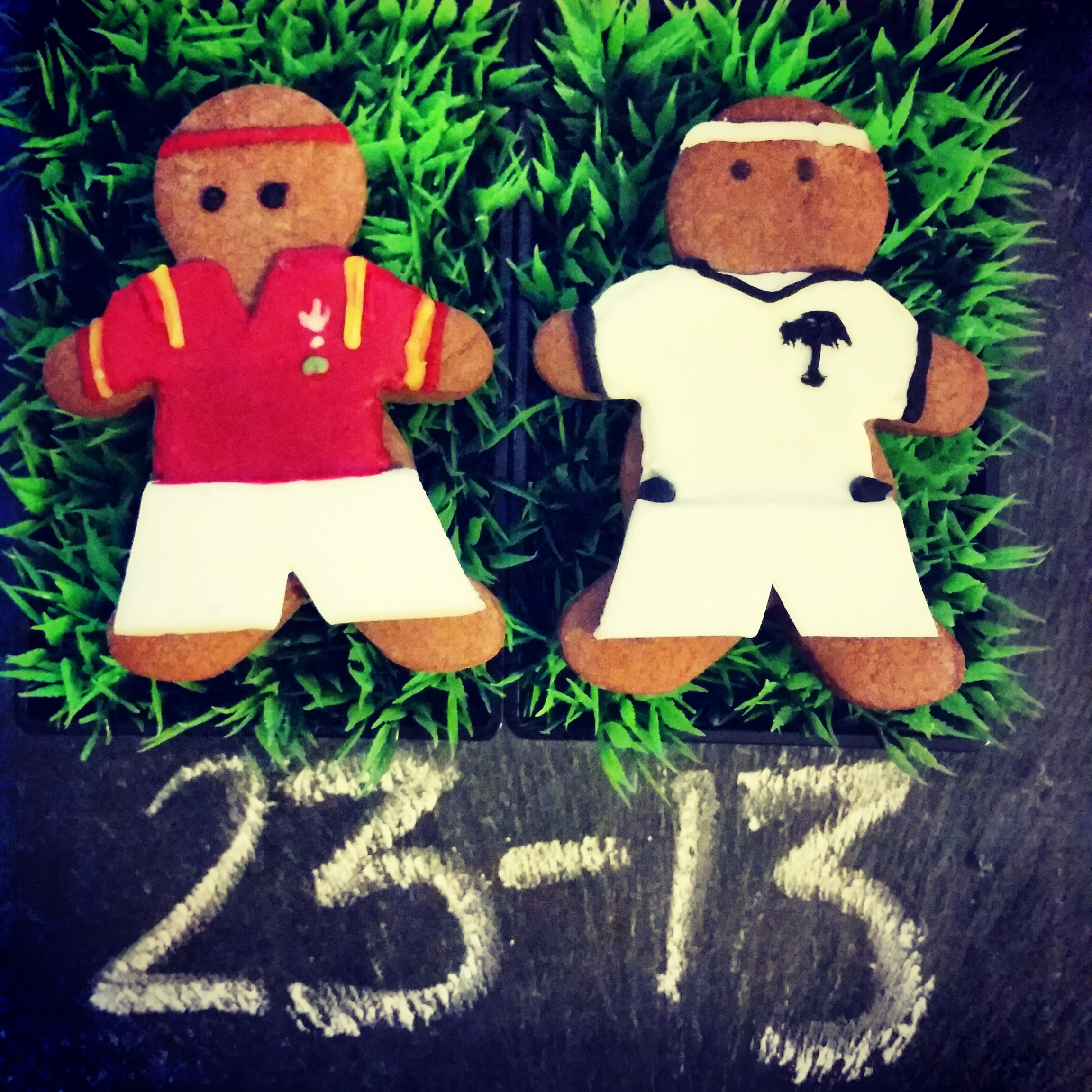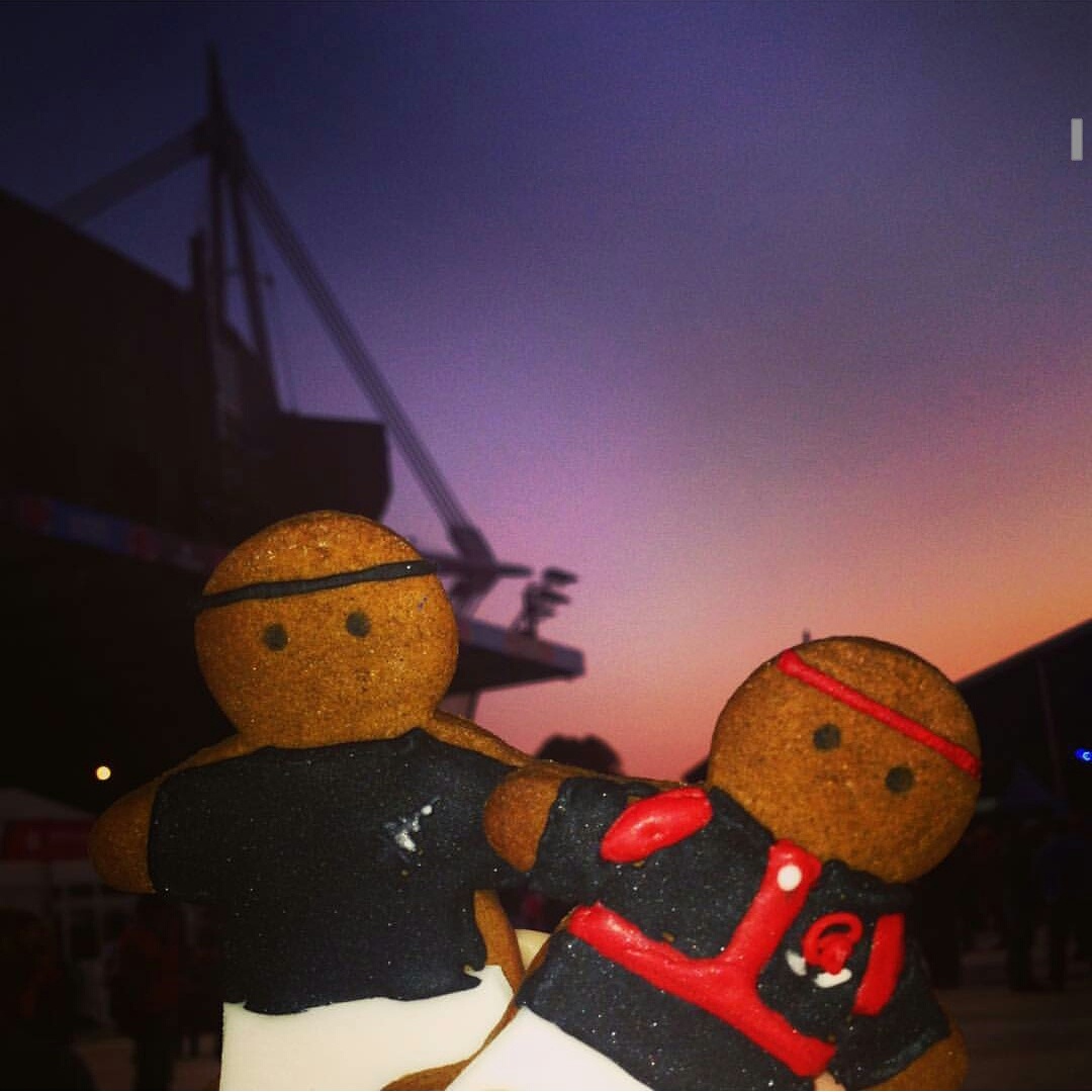 The gingerbread were also very fortunate to have secured tickets to the game and were chaperoned by a ridiculous looking chicken…
