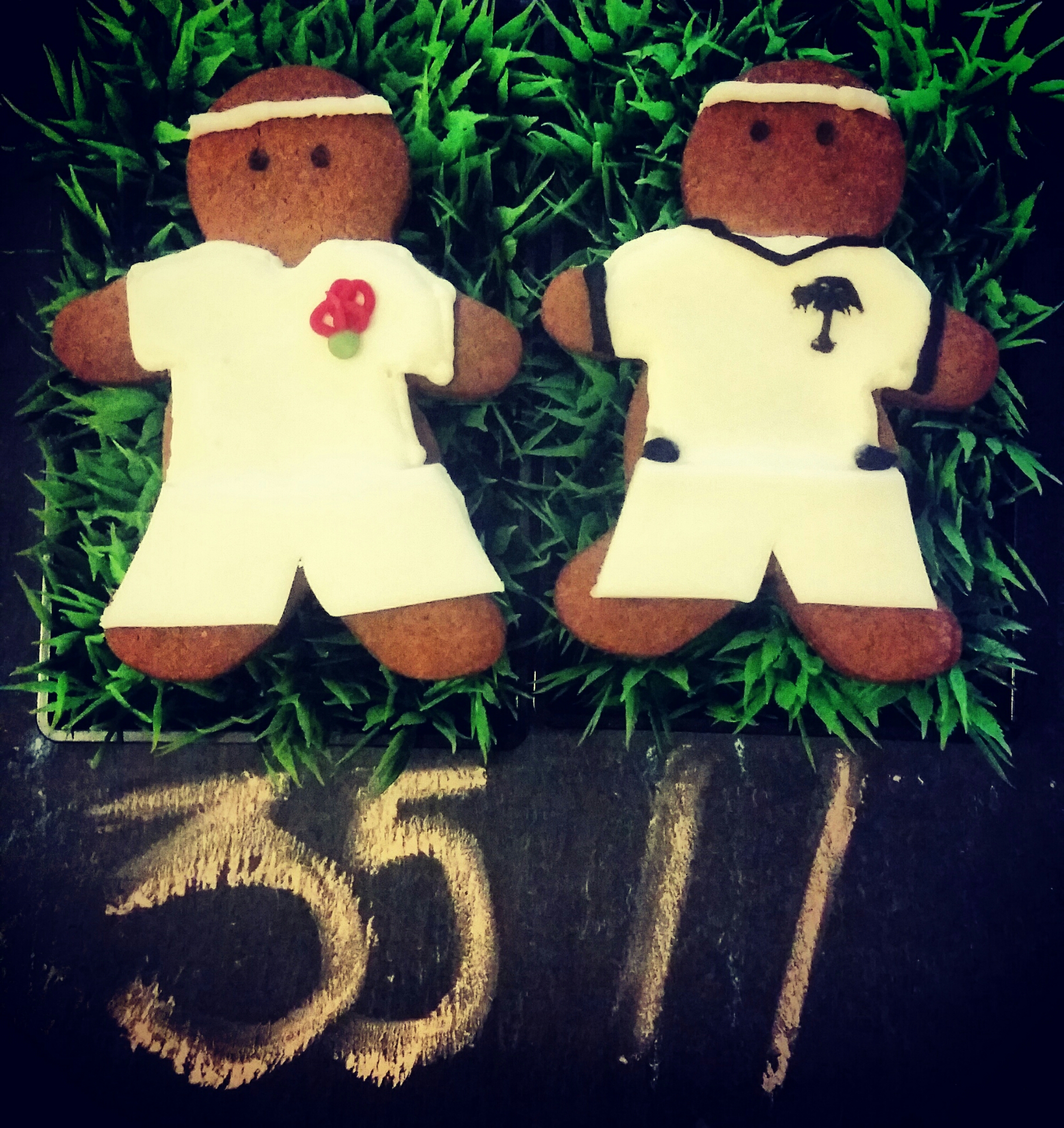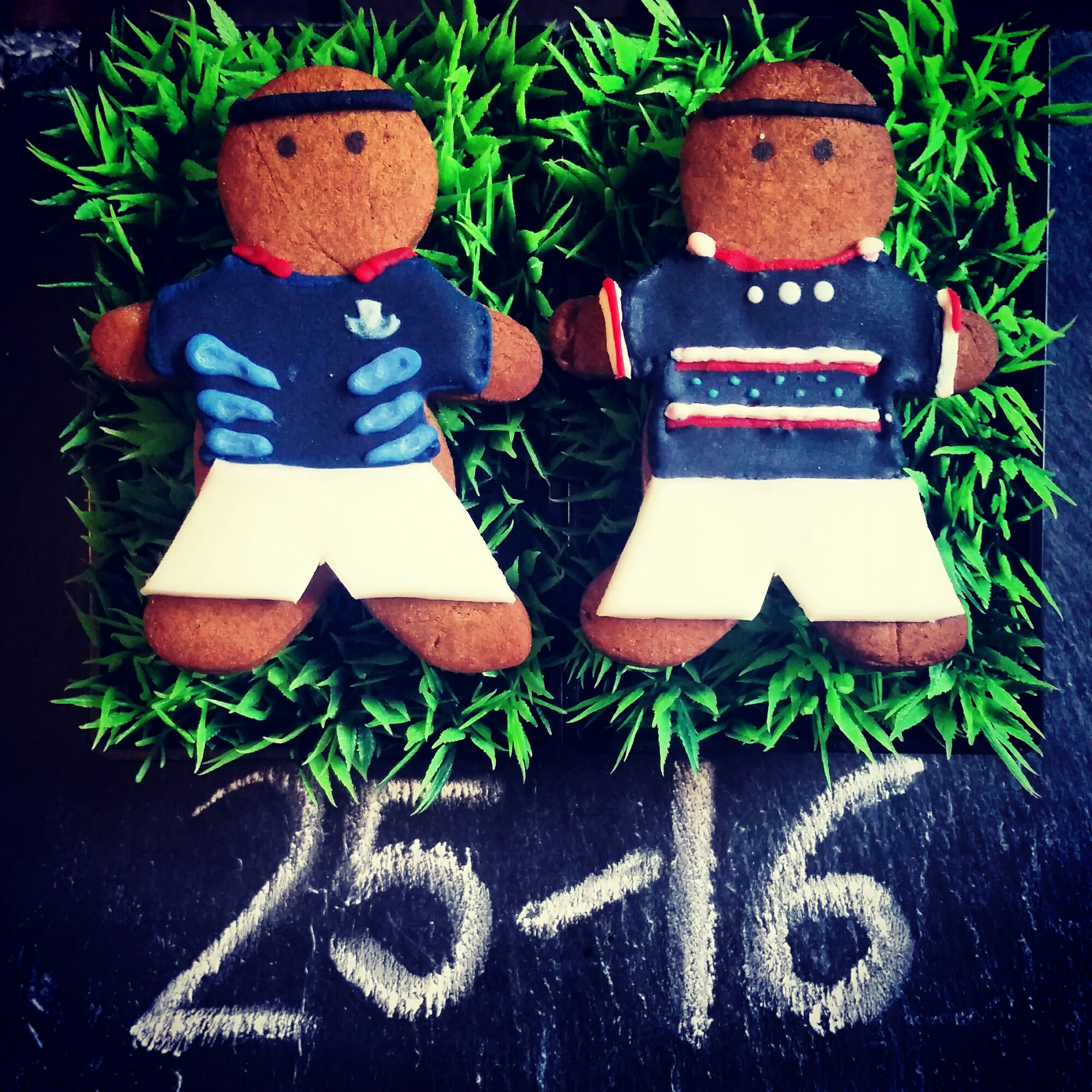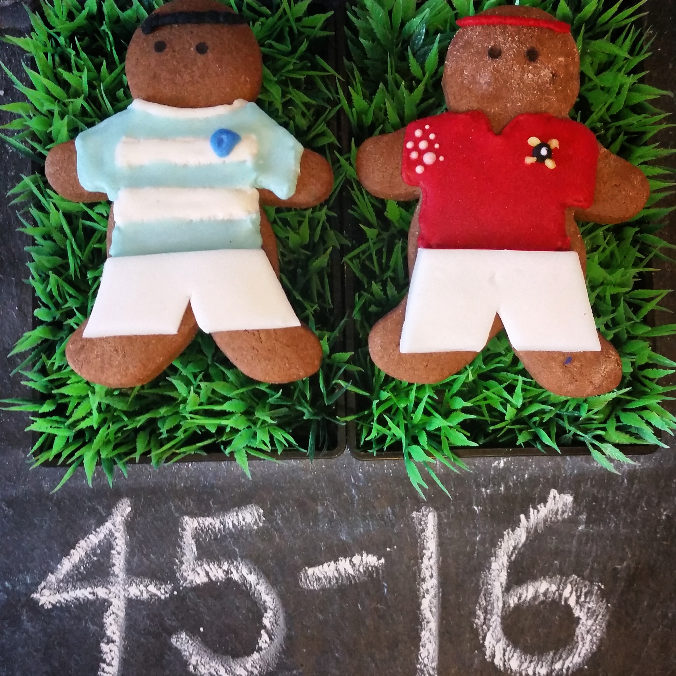 The gingerbread were also very fortunate to have secured tickets to the game and were chaperoned by a ridiculous looking chicken…